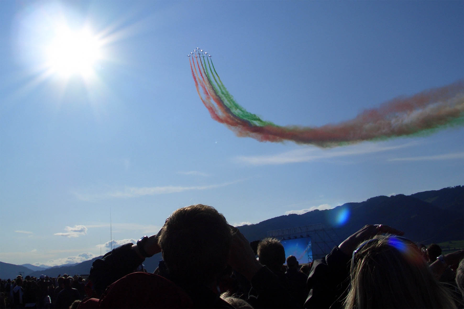 Im Ausstellerbereich gibt es leider weder eine Großbildleinwand noch einen Lautsprecher, daher bekommen wir von der Aufregung um die kollidierten Fallschirmspringer und den Vogel(an)schlag auf die Royal Saudi Hawks am Freitag nicht viel mit. Den gelassenen Erkundungsflug eines Storchs über der Einflugschneise können wir zwar mitverfolgen, aber die Sicht vom – übrigens sehr interessanten – Militär- und Luftfahrtmuseum ist durch die umliegenden Gebäude doch etwas beschränkt. Daher gönnen wir uns am Samstag einen längeren Ausflug um u.a. die grandiose Patrouille Swiss und später die Abschlussdarbietung der Frecce Tricolori in aller Herrlichkeit bestaunen zu können. Wir sind von den akrobatischen Flugkünsten der Staffeln und der (wieder einmal) hervorragenden Organisation durch das Bundesheer jedenfalls total begeistert und freuen uns schon auf das nächste Mal! :-)