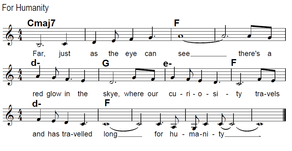 Nur eben anders. Neu. Worte und Klänge für ein Ziel und eine Gemeinschaft. Sie konnte singen. Ob die anderen Marsianer es konnten, wusste sie nicht. Ein Instrument konnte sie nicht mitnehmen, aber vermutlich konnten die Rechner Klänge generieren.